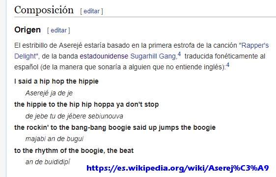 Y en el artículo de Wikipedia de Aserejé, existe la mención muy breve de Rapper’s Delight: